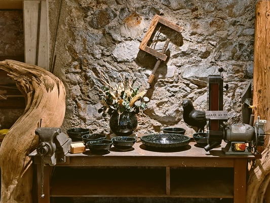 ID – das ist die Idee, aber auch die Identität. Beides findet hier Raum: Fundstücke aus der Natur, Schwemmholz, Steine, kombiniert mit Keramik, Stahl und dem, was andere vielleicht längst vergessen haben. Aus all dem entstehen Skulpturen, Objekte, Alltagsstücke – und manchmal auch einfach neue Wege.